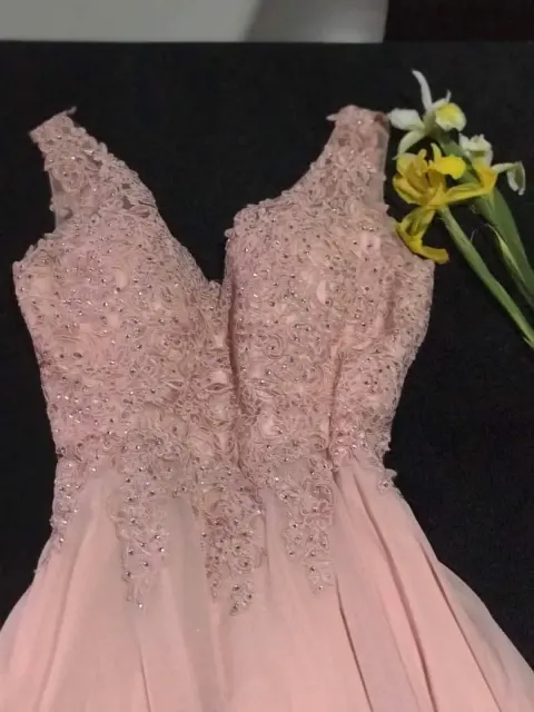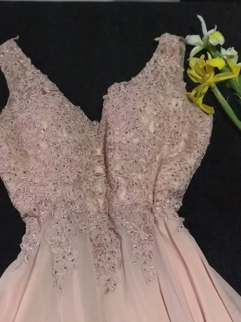 Bello vestido de fiesta, súper elegante color rosa palo.