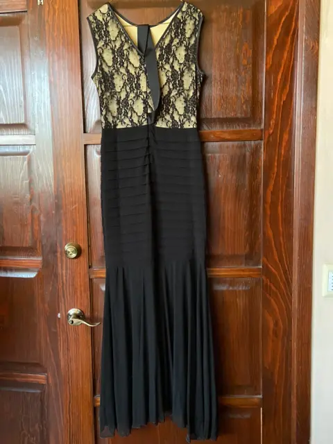 Vestido negro con encaje tela strech y corte sirena solo una puesta talla L