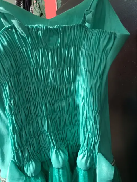Vestido de fiesta. Solo tiene un pequeño detalle, se alcanza a ver un poco en la foto, es una pequeña mancha✨Es talla chica ✨Tiene resorte atrás para que estiré