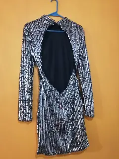 Vestido de fiesta. Vestido de lentejuelas plata, arriba de la rodilla talla M