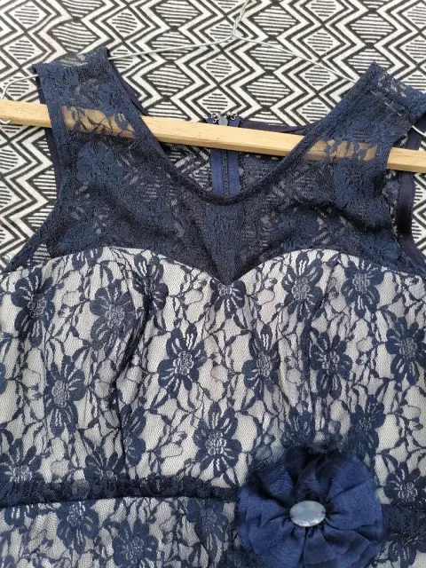 Hermoso y elegante vestido corto, cubierto de encaje 🙌🙌es más largo por atras, su encaje es muy suave, denota el forro blanco en forma de corazón y la parte de arriba es hermosa 😍😍😍