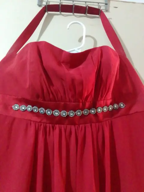 Vestido de fiesta, cuello halter, con bello toque de piedras para resaltar el bustoTalla L-XL