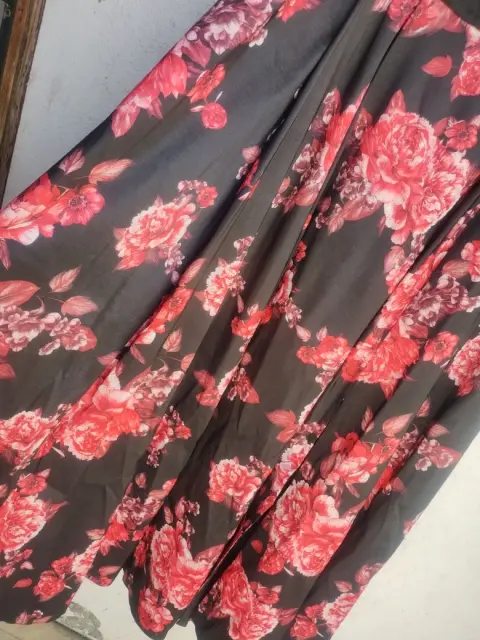 Vestido de fiesta. Negro con rosas rojas, falda amplia con una abertura a un lado, cuello y espalda en v, cierre en la parte de atrás, largo acomoda muy bien