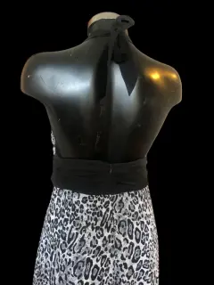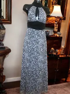 HERMOSO VESTIDO CUELLO HALTER, NO SE ARRUGA Y TIENE UNA CAIDA INCREIBLE. SIN DETALLESMEDIDASBUSTO 86CINTURA 80CADERA 100LARGO FALDA 115