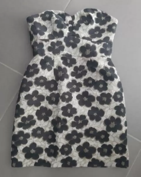 Vestido de fiesta. Vestido corto de fiesta, mide de largo 64 cm, de talle 36 cm, de axila a axila 44 cm y de cadera 50 cm, tiene cierre atras
