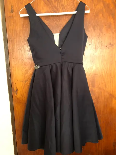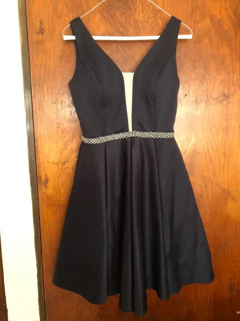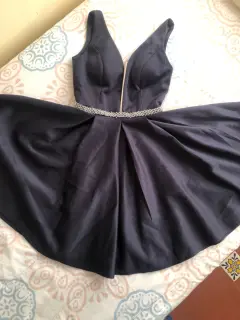 Vestido de fiesta azul marino. Lindo vestido para jovencitaIdeal para graduación o fiesta formalAplicaciones de chaquira color perla y gris en la cintura que lo hacen elegante Medidas:De axila a axila 49 cmCintura 31Largo 83