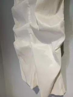 Vestido de fiesta blanco. Vestido corto de fiesta en color blanco, con hombros caídos la tela es brillante y elástica, tiene drapeado en la parte trasera y en el busto, marca Lu&Co