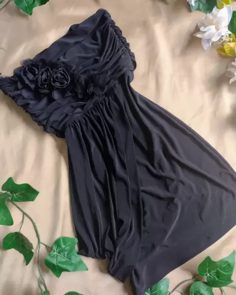 Vestido de fiesta color negro. ❤Preciosa tratar si la compra es inmediata o si te interesan otras prendas✨Se envía todo en un mismo paquete para ahorrarnos los envios :3 📌Vestido color nengro con flores👉Tela stretch✨Talla CH (pero tambien puede quedar M)🤗Solo tiene unos detalles en la parte de arriba y por dentro, no son visibles al ponerselo. Imagen 5🪡MEDIDAS de costura acosturaBusto 32Cintura 29Largo 65