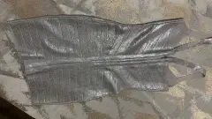 Bonito vestido de fiesta, en color plata tipo de tela licra talla S marca bebé acomoda súper bonito estilizando el cuerpo