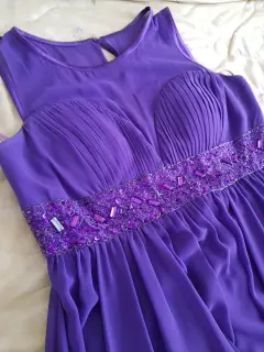 Vestido de fiesta con Pedreria. Vestido largo para fiesta con incrustaciones de Pedrería, corte tipo princesa color lila talla grande,
