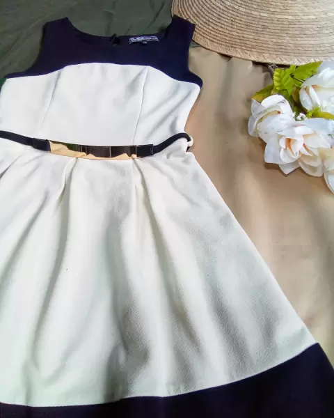 🤩Precio a tratar si la compra es inmediata😊 o si te interesan mas prendas, se envian en un mismo paquete para ahorrar en enviosVestido de fiesta talla CH🤍Color beige con negroIncluye cinturónMEDIDAS de costura a costura💓Largo 78 cmCintura 34 cm