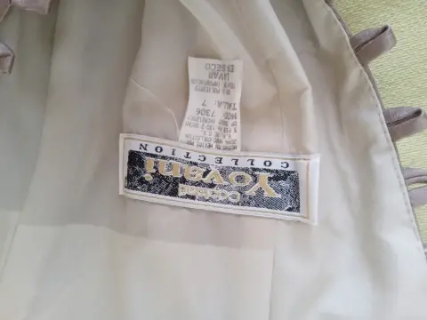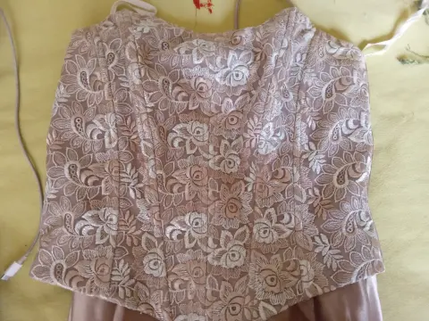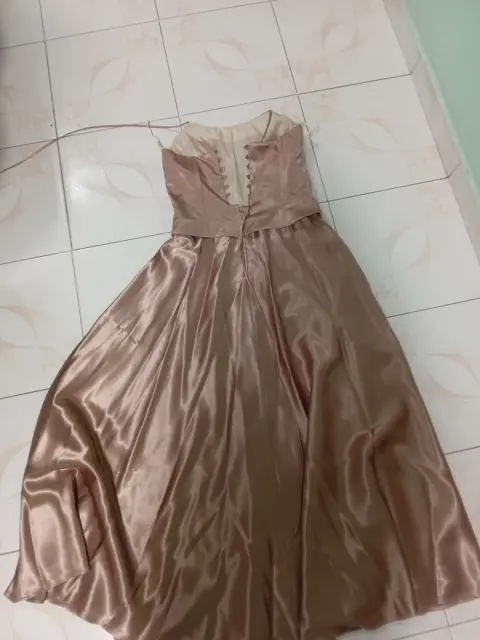 Vestido de fiesta dorado satinado. Vestido de fiesta elegante largo dorado satinado talla 7 en buenas condiciones