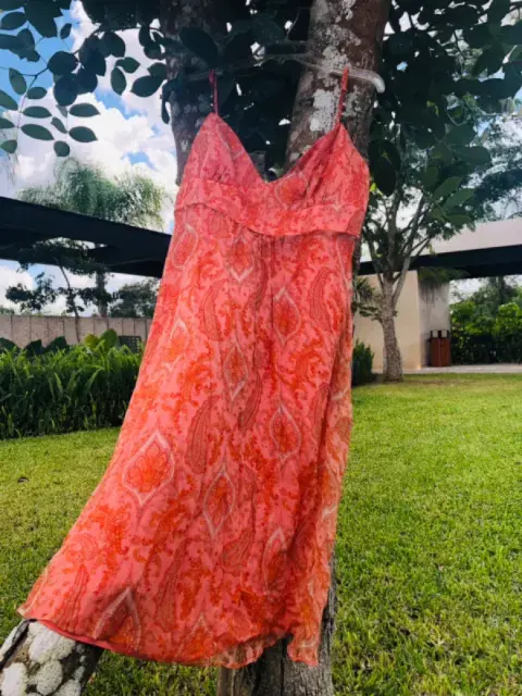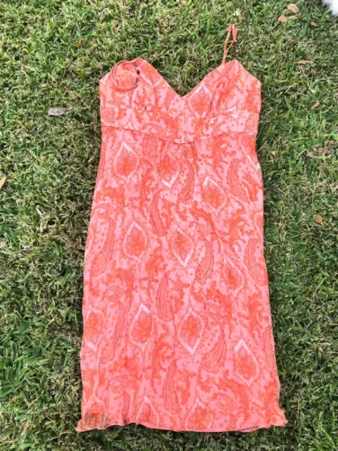 Vestido de fiesta estampado. Lindo vestido de fiesta, ligero con tirantes y con vuelo en shiffon estampado, tonos corales , corte imperio . Marca Laundry by Shelli Segal