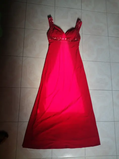 Vestido de fiesta largo.. Vestido en color rojo confeccionado en tela poliester con elastano, con bordado con lentejuelas en vista del busto y hombros, verdaderamente elegante.