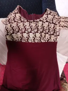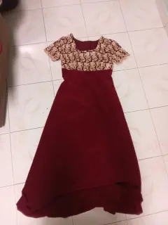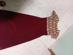 Vestido de fiesta largo elegante. Vestido de fiesta elegante largo color vino con aplicación dorada manga corta