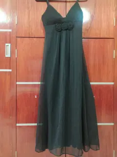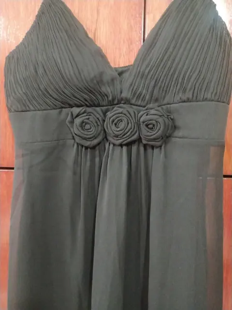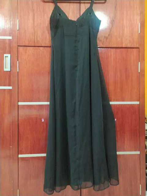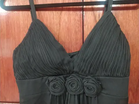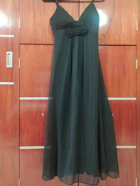 Vestido de fiesta largo, talla CH. ,color negro. De uso, una sola puesta. Magnífico color, fresco. Tirantes ajustables, cierre trasero. Con forro. 100%poliester.