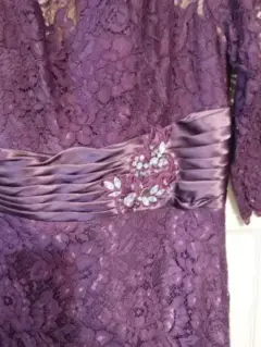 Vestido de fiesta para dama grande y hermosa!. Vestido largo (yo mido 1.72 mts) color uva, todo de encaje con forro de satín, con aplicación a la cintura de cintillo de seda con piedras hermosas, solo una vez me lo puse; para que tengas bellos recuerdos de esa fiesta increíble!!❤️🎉👗❤️