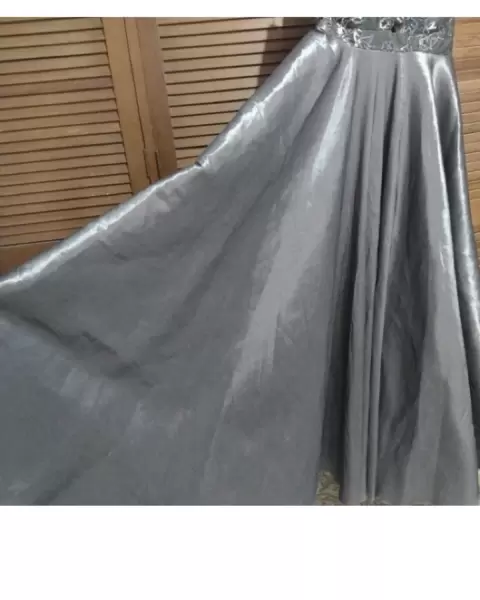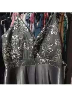 Vestido de gala plateado corte A. Hermoso vestido color plata con aplicaciones en el busto, se ata de la parte de atras con nudo. La copa va desde 32 a 34c.La falda es corte A con muchísimo vuelo.Se uso una vez NECESITA TINTORERIATiene detalle en los tirantes ya que se cosieron, se muestra en ultima foto, no tiene ningun otro detalle esta prácticamente nuevo. Queda tal cual la primer foto ( es del dia que se uso)