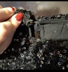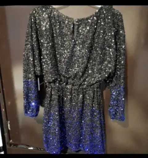 Vestido de lentejuelas, Negro con azul, Talla S, totalmente nuevo, tiene un detalle en el cordón para abotonar.