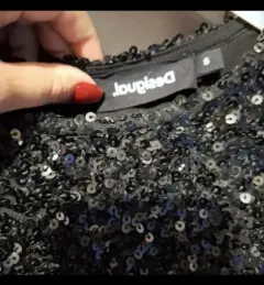 Vestido de lentejuela Desigual Talla S. Vestido de lentejuelas, Negro con azul, Talla S, totalmente nuevo, tiene un detalle en el cordón para abotonar.