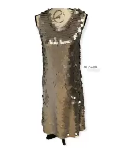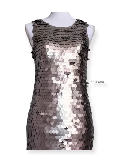 Estas lista para brillar? Hermoso vestido suelto, lleno de lentejuelas de cola de sirena, color grisaseas/plateadas, la tela de fondo es gris, super bonito, la tela estira, no le faltan lentejuelas, solo estas desordenadas..Medidas áxila a axila 43cm, hombro a hombro 27.5cm, largo 80.5cm