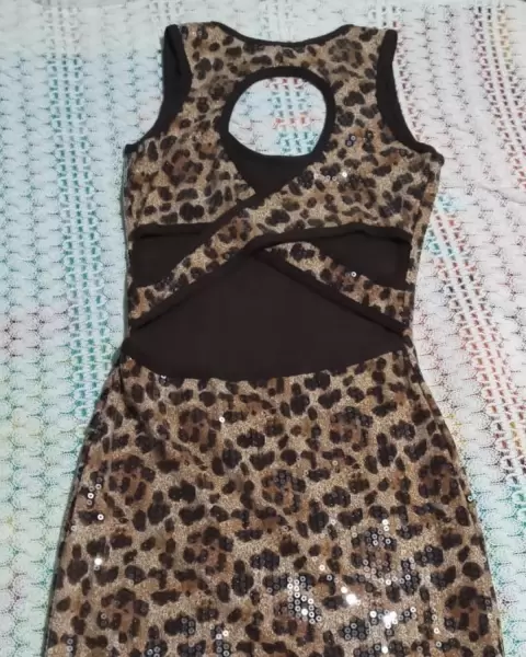 Vestido de lentejuelas y animal print. Hermoso y sexy vestido animal print y lentejuelas, con impresionante escote en espalda. Una sola vez utilizado. En excelente estado y calidad