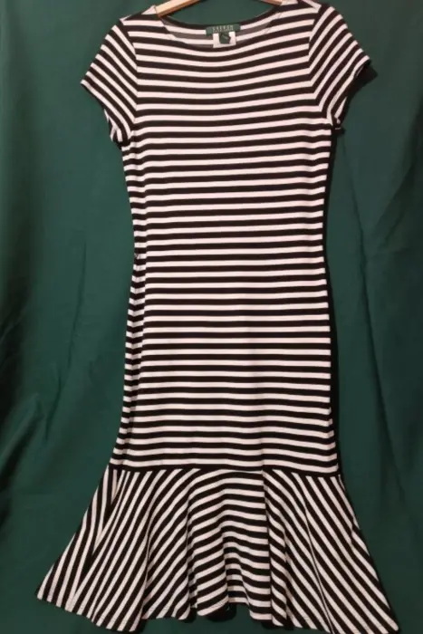 Increíble vestido de líneas Ralph Lauren con precioso corte de sirena.Súper suave al tacto.Medidas de hombro a hombro 35 cm de axila axila 38 cm y de largo 100 cm.Lleva hermoso accesorio de regalo 🎁