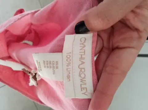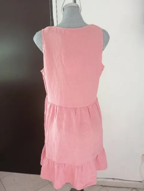 Vestido Cynthia Rowley corto, color rosa con olán en la parte inferior. Talla XL. Es de lino, por lo que es súper fresco para esta temporada de calor! No tiene fondo. Nuevo.