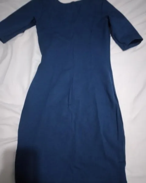 Vestido de color azul, con mangas 3/4, color azul fuerte. Con pequeño detalle en el pecho