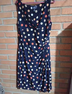Vestido de lunares, drapeado en la cintura. Vestido azul de lunares, drapeado del lado izquierdo de la cintura, la tela estira y queda ajustado al cuerpo