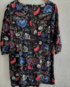 Vestido de manga larga. Hermoso vestido con estampado, talla m, manga larga con hermoso detalle de botón en las mangas, me llega a la rodilla y yo mido 1.55; nuevo la etiqueta está rota pero la prenda no tiene ningún detalle.