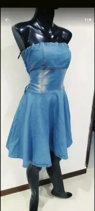 Vestido de mexclilla strapless circular. BMaritzabazaren esta ocacion te traemostalla chcolor azulmade in ?strech simarca notelas mezclillaMEDIDAShombroaxila 40 cm cintura 37 cm cadera es suelto largo 75 cm desde la axila Estira mucho