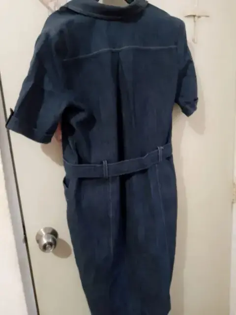 Vestido de mezclilla, marca tessuti, talla 34. Tiene cinto o fajo.