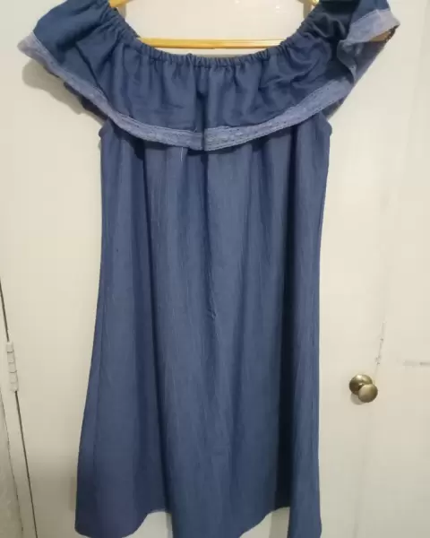 Vestido corto, tipo mezclilla, delgado, fresco e ideal para usar con cinturón para estilizar la figura, no tiene detalles, súper comodo
