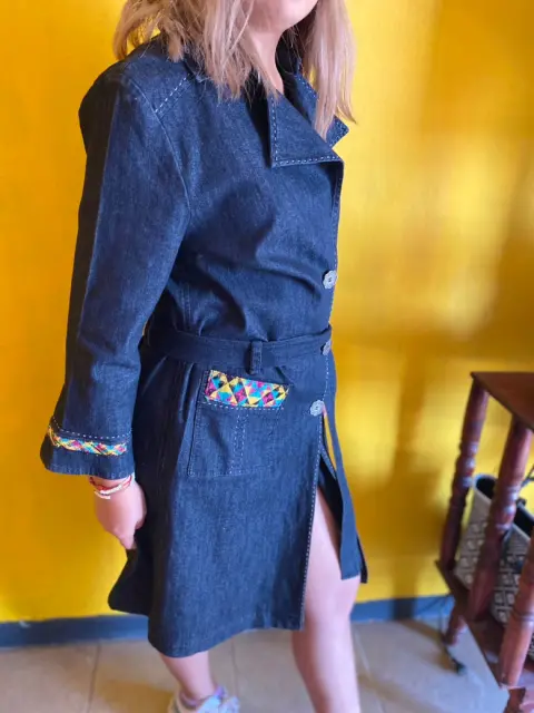 El vestido es de alta calidad, confeccionado con mezclilla resistente y cómoda que te hará sentir segura y a la moda. Su corte favorecedor resaltará tu figura y te hará lucir espectacular.No te quedes sin este maravilloso vestido de mezclilla con bordado, ¡hazlo tuyo y deslumbra a todos con tu estilo único y sofisticado!