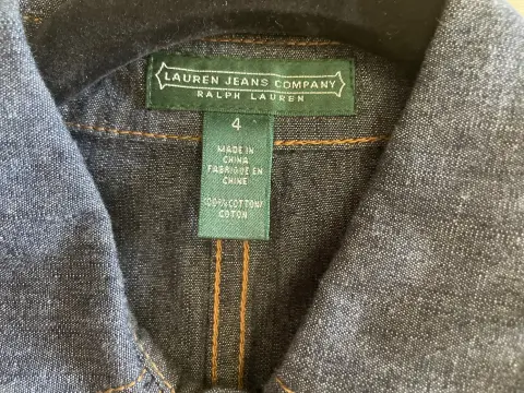 Mezclilla , color oscuro, nuevo,talla 4, vestido línea A. Con cinturón de cordón grueso color azul marino .