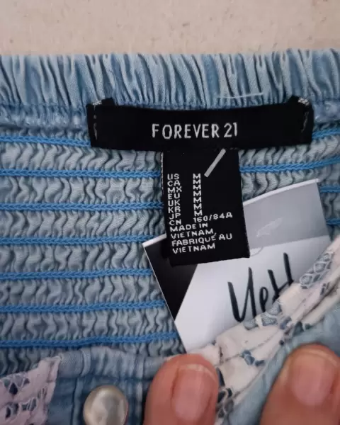 Vestido de mezclilla con aplicación de encaje, talla mediana de forever 21