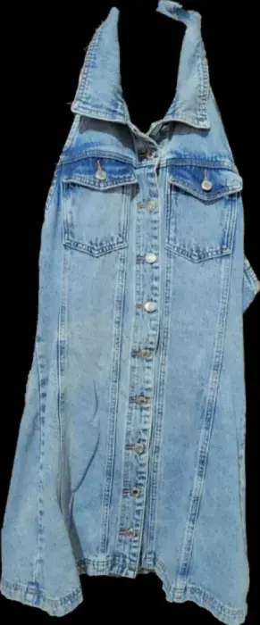 Vestido totalmente nuevo de mezclilla, espalda descubierta, corto.