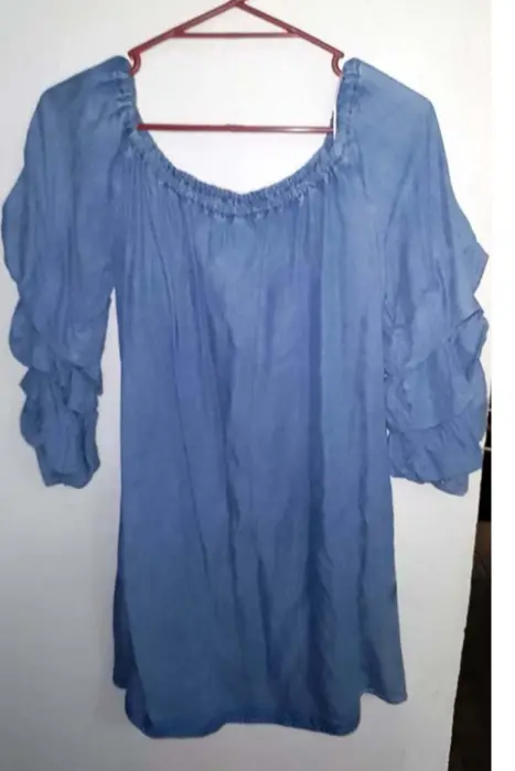 Vestido de mezclilla, fresco, motivo corrugado en manga, se puede usar tipo campesino o no, maraca Zara womanEnvío a la brevedadAcepto ofertas