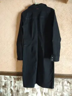 Vestido de mezclilla negro 💥. Llega hasta abajo de la rodilla con botones de presión en medio del pecho todos funcionan un pequeño detalle en la manga del brazo izquierdo que tiene solución