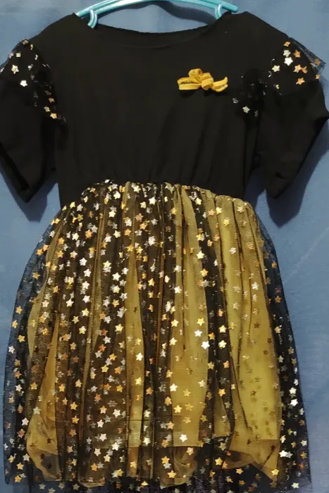 Vestido de niña negro con detalles en dorado, manga corta,talla 12-18 meses, se usó una vez.En excelente estado.