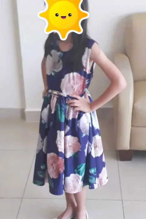 Vestido azul marino de flores de niña talla 8 años