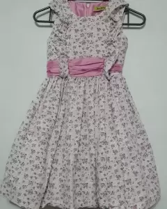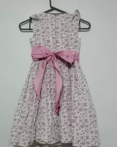 Vestido de niña Jessy Franz - kids. Hermoiso vestidito Jessy Franz de color blanco con flores en tonos rosa, pliegues y ajuste a la cintura.Con hermoso listón rosa y pliegues tipo olan en el peto, tiene doble vuelo gracias a su forro doble.Talla 6 de niñas
