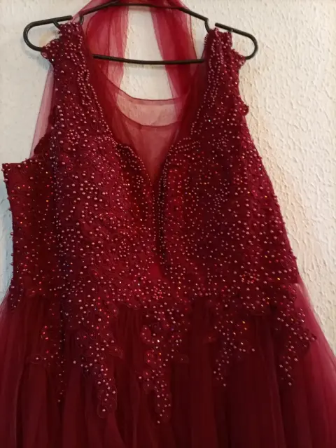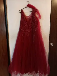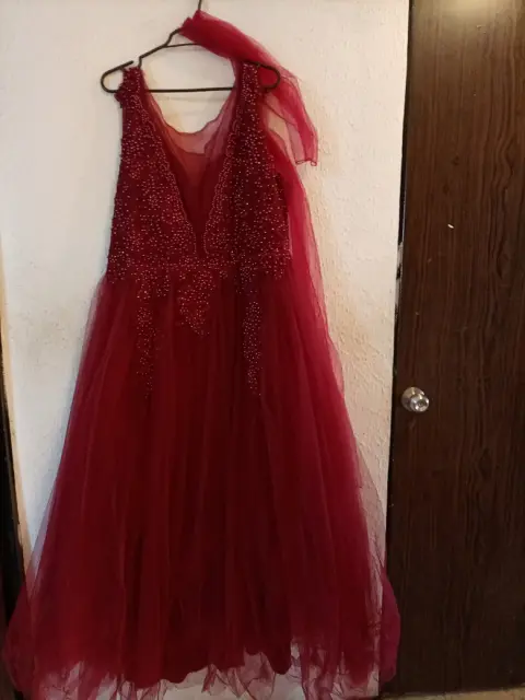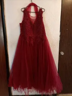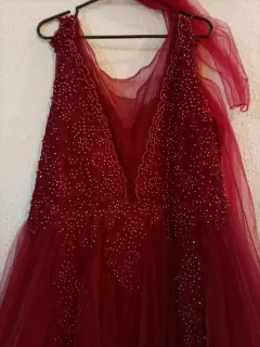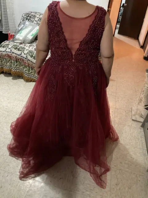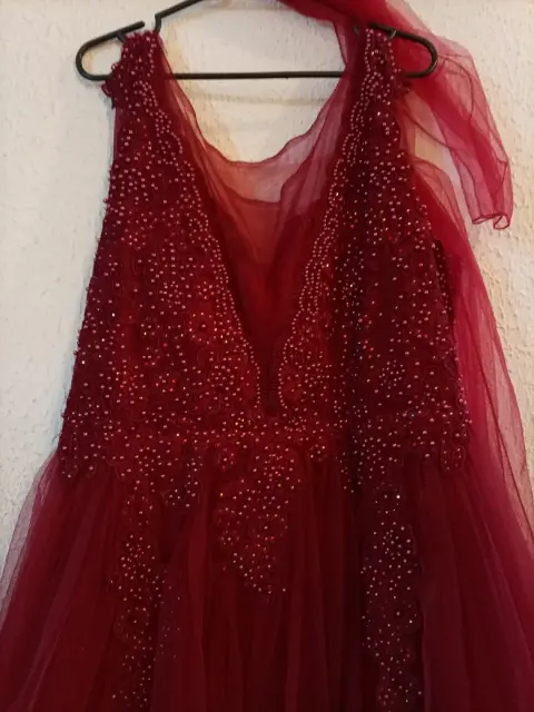 Vestido de Noche color vino, con detalles de lentejuelas, talla G completamente nuevo, incluye mascada