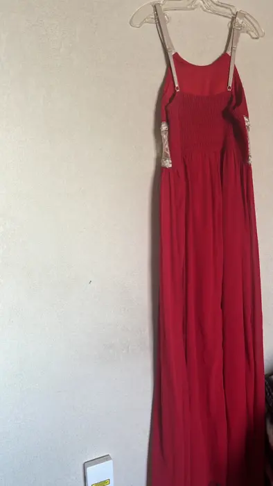 VESTIDO DE NOCHE. Vestido de nocheLargoRojo con dorado, de TirantesTela de gasa con forro de algodón muy cómodo y ligero, con bordado