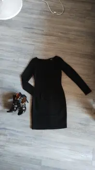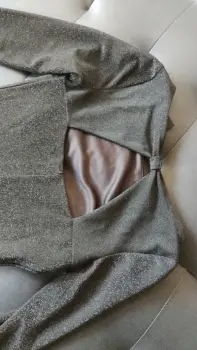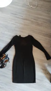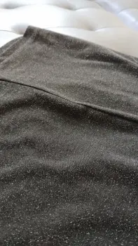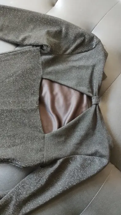 Vestido corto arriba de la rodilla, la tela tiene destellos plateados ideal para la noche