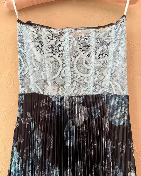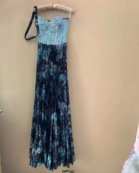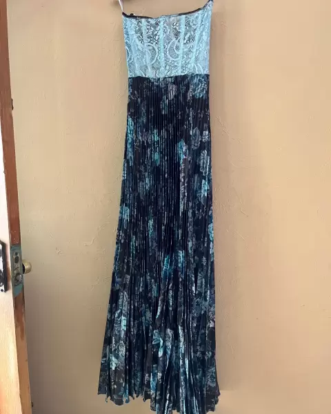 Precioso vestido de una famosa marca italiana para una velada inolvidable. Nuevo a estrenar con etiqueta. Se incluye tela costosa de alta calidad, hermoso guipur, corsé incorporado y cinturón, se abrocha con una cremallera lateral, la longitud se puede cortar para adaptarse a cualquier altura (¡esta tela no tiene dobladillo!) Copa del sujetador aproximadamente B3 / B4. El color se transmite completamente por las fotos que se toman de cerca. Puedo enviar medidas a pedido si es necesario.