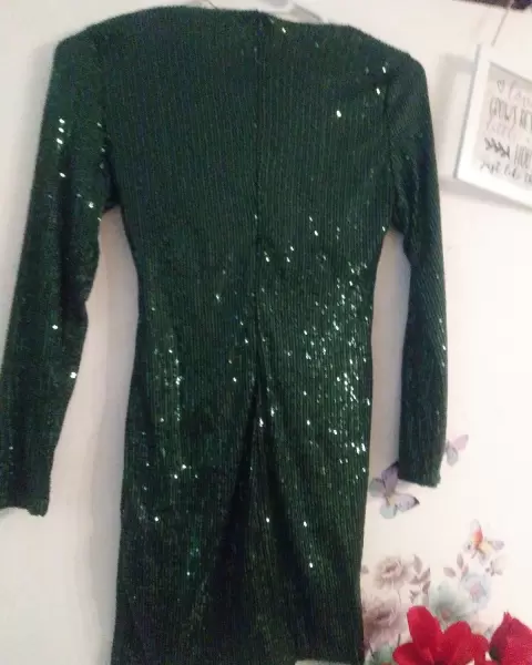 Hermoso vestido una puestaColor verde a brillantadoSi tienes al guna duda puedes preguntar sin ningum problema es toy a tus hordenes