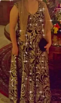 Vestido de noche. Vestido de noche, puesto una sola vez, dorado con negro, largo, el talle con resorte en la espalda