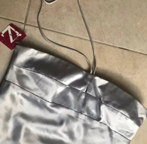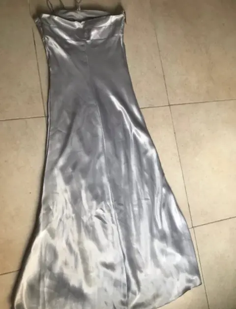 Vestido de noche. Plata con hermosa caída, se ajusto para talla s, nuevo
